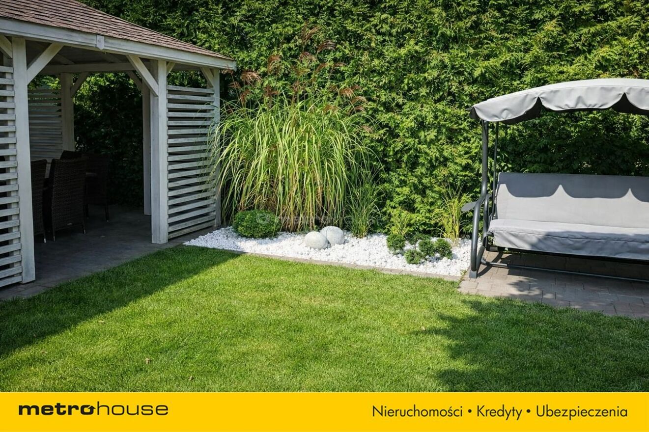Dom położony jest w głębi działki(ok. 70 m od drogi). Cała działka jest ogrodzona, wykostkowane i utwardzone jest prawie 1000 mkw jej powierzchni. Frontowa cześć parceli została zagospodarowana na ogród, z efektownymi roślinami, które zostały fachowo dobrane, aby o każdej porze roku cieszyć oko właścicieli. W ogrodzie jest miejsce na basen, jacuzzi, huśtawki, hamak, altanę i mnóstwo zakątków idealnych na relaks i odpoczynek.