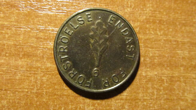 Żeton do gier (szwedzki) - for forstroelse endast 6 (tylko dla rozrywki), brak daty wydania), stan bardzo dobry.